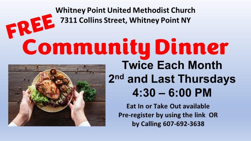 Whitney Point UMC has been a part of the Whitney Point Community since the 1800’s. We are dedicated to being a positive force in our village and the surrounding towns. We value community, worship, and the feeling of sanctuary–that anyone can come and feel safe, secure, and wanted. Come and be fed.